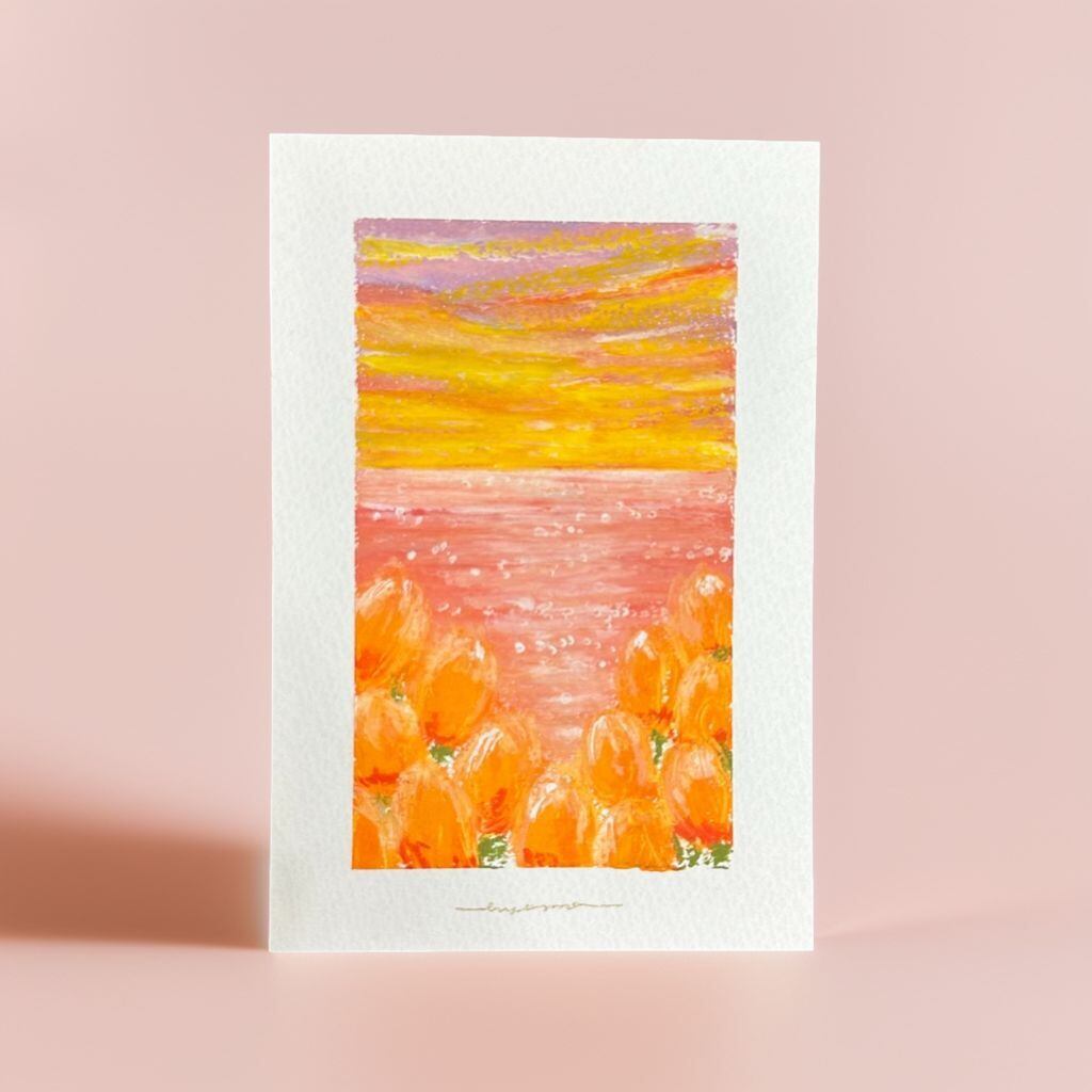*絵はぴったりサイズのビニール袋に入れた上で梱包し、発送いたします。袋から出す場合は絵の部分を触らず余白を持ってゆっくり引き出して頂くようお願い致します。