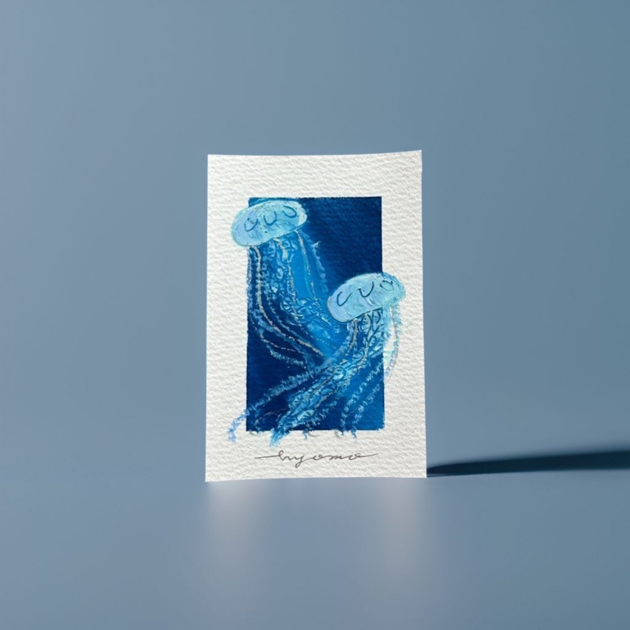 *絵はフィルムに入れた上で梱包し、発送いたします。袋から出す場合は絵の部分を触らず余白を持ってゆっくり引き出して頂くようお願い致します。また、スマホケースの裏に入れる際はフィルムに入った状態で入れていただきますようお願いします。