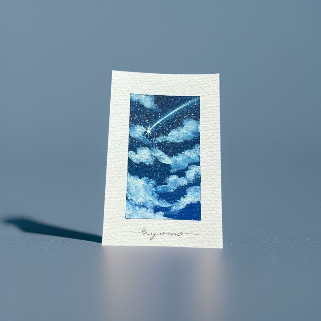 *絵はフィルムに入れた上で梱包し、発送いたします。袋から出す場合は絵の部分を触らず余白を持ってゆっくり引き出して頂くようお願い致します。また、スマホケースの裏に入れる際はフィルムに入った状態で入れていただきますようお願いします。